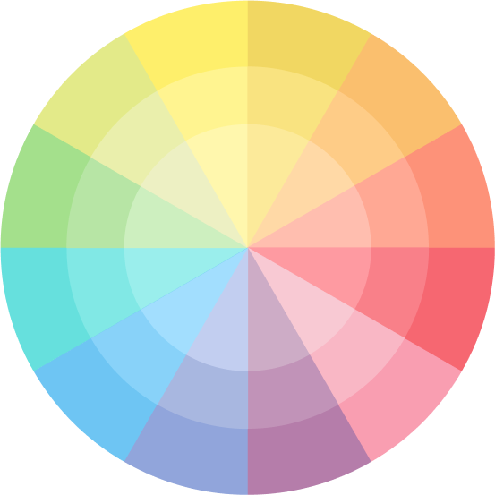 As the name suggests, square colour schemes use four colours spaced evenly around the wheel, which could connect to form a square. Using the wheel above, you’d select every third colour. Like tetradic schemes, this creates a colourful palette, but with more balance due to the spacing of the shades.